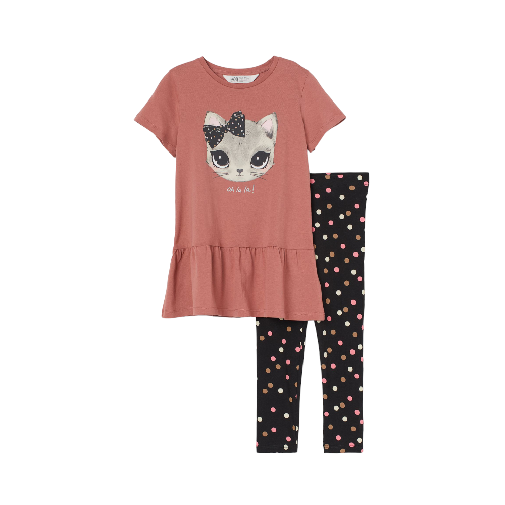 | Bottom: Cotton 96%, Elastane 4%Top: Cotton 100% | Dark Old Rose/Cat | Girls | 2-3Y |